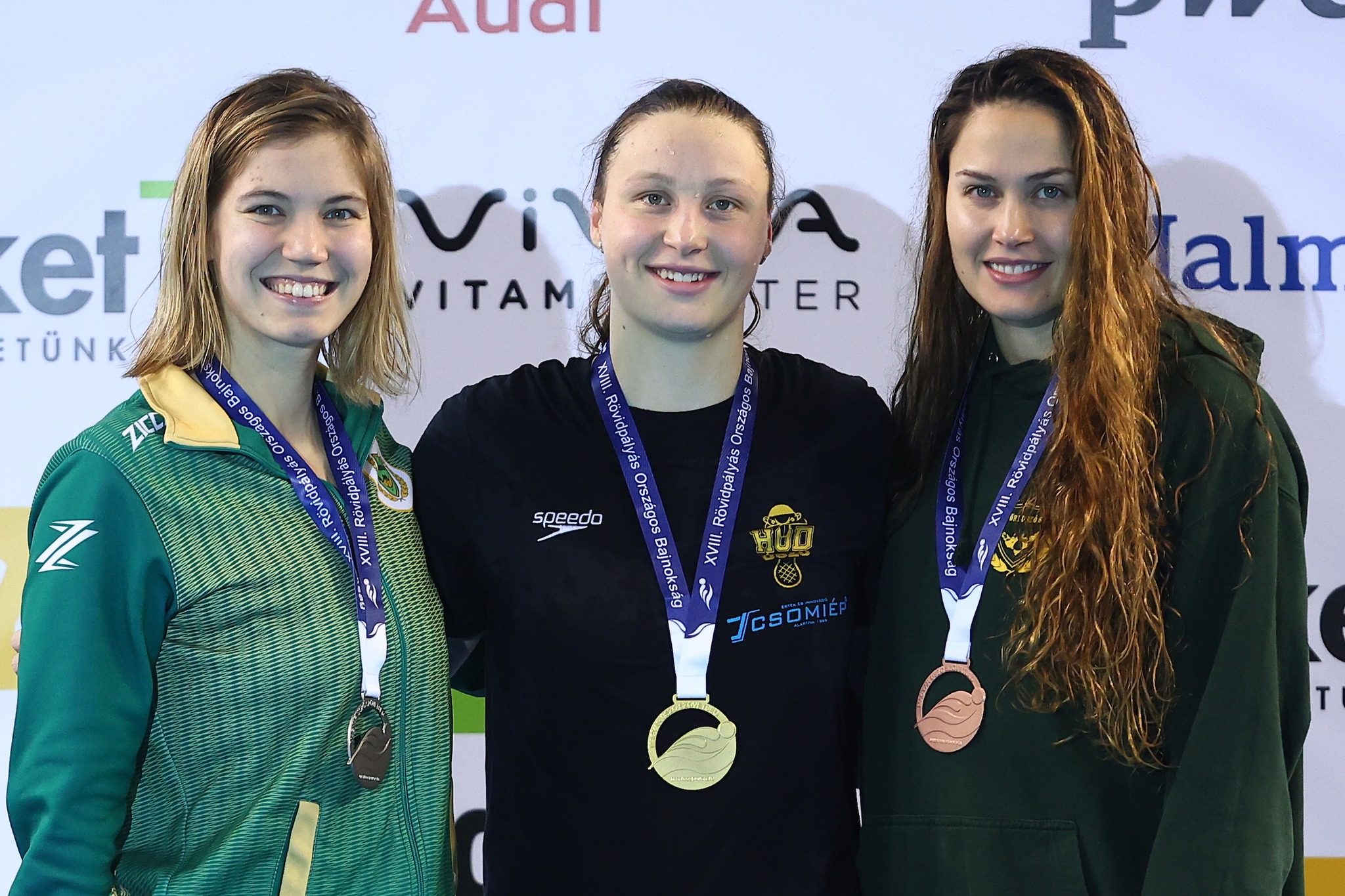 Először az Utánpótlás Rövidpályás Bajnokság legeredményesebb versenyzőit köszöntötte az egyesület fő támogatója, Mészáros Antal, a CSOMIÉP Kft. igazgatója, és Walterné Böngyik Terézia, a Hód Úszó SE elnöke.